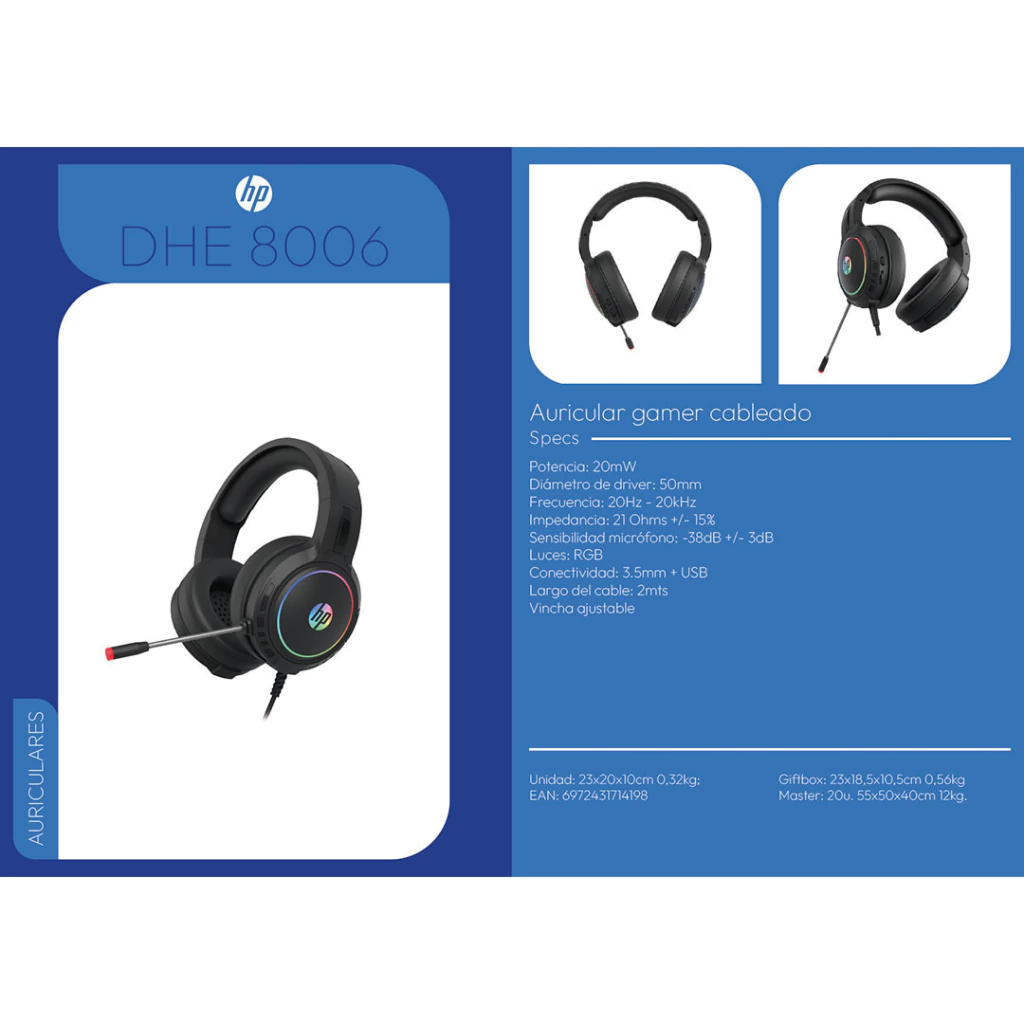 Los DHE 8006 están diseñados para ofrecer una experiencia de audio envolvente y un estilo impactante gracias a su iluminación RGB. Su diseño ergonómico con vincha ajustable garantiza comodidad en largas sesiones de juego, mientras que su cable de 2 metros proporciona libertad de movimiento sin restricciones.