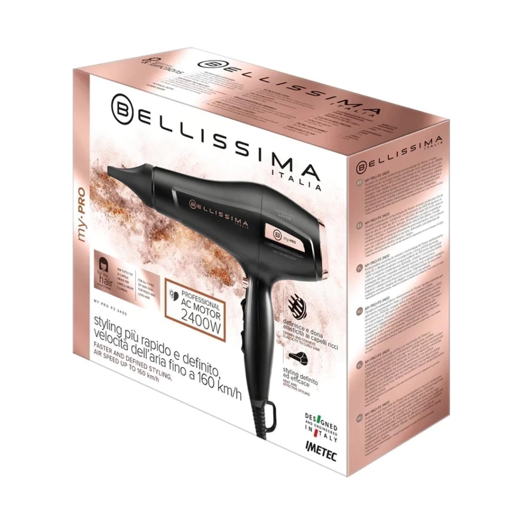 Tiempo de secado reducido y resultados sorprendentes: el cabello queda suave y brillante sin encrespamiento. P3 3400, es el potente secador de pelo con motor profesional de larga duración, 2400 W de potencia que genera un flujo de aire de más del 30 %* y una velocidad de hasta 160 km/h.
