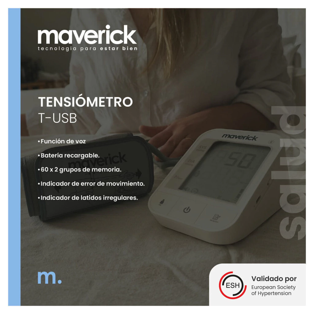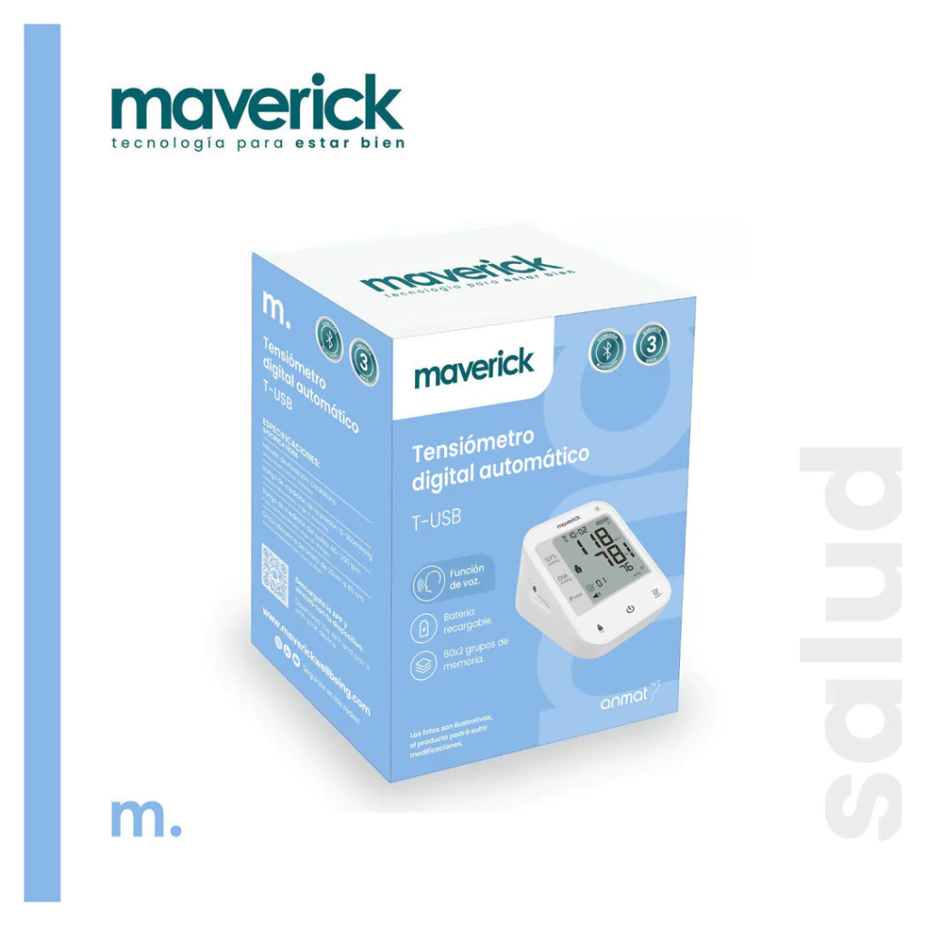 Descubre el Tensiómetro Digital de Brazo T-USB, un dispositivo esencial para el monitoreo de tu salud en la comodidad de tu hogar. Este tensiómetro, de la reconocida marca Maverick, se destaca por su diseño elegante y su funcionalidad avanzada, brindándote un control preciso de tu presión arterial.